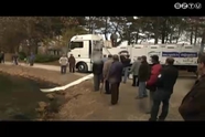 Erre az autóra vártak az emberek. Ez hozta a halakat, amiket a vízbe engedtek.