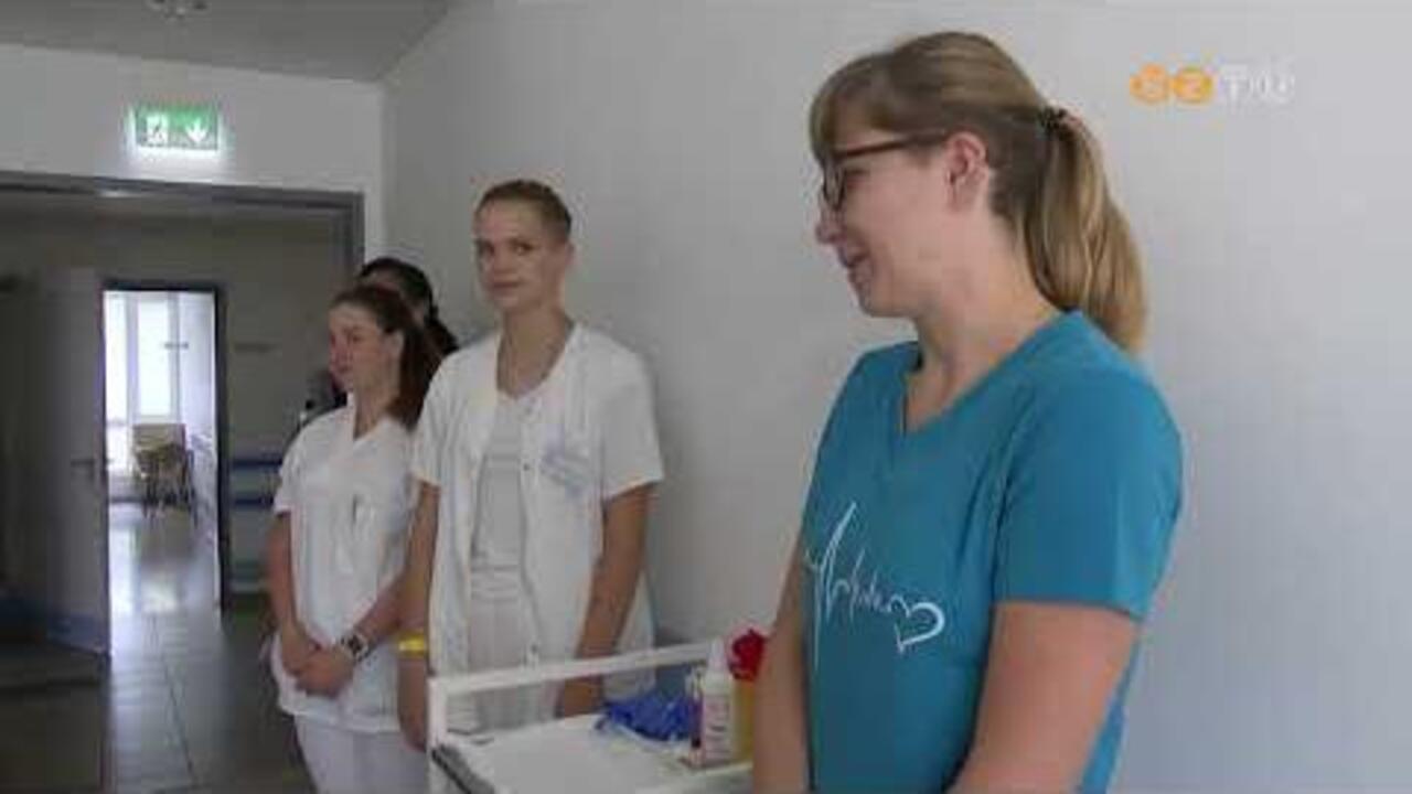 Kneisz Dóra is tanulóként kezdte a kórházban, osztályelső volt a szakképző iskolában. Most teljes állásban dolgozik a kardiológiai osztályon és levelező szakon diplomás ápolónak készül, közben pedig oktatja a többi fiatalt.