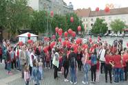 A rendezvény záróakkordjaként szív alakzatot formáltak a diákok, így engedték a magasba a piros luftbalonokat.