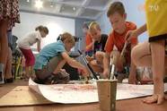Csoportmunkában készül az alkotás a képtárban.