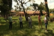 Sok más mellett a meridiántornát is ki lehetett próbálni az arborétum árnyas fái alatt. A két lábon végzett intenzív testedzés során az energiacsatornákat aktivizálják. Képek 5.58-tól