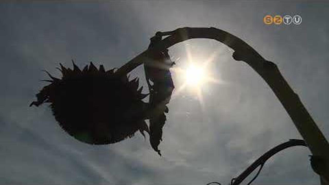 Szóját arattak nemrég ezen a földterületen. A szárazság megviselte a növényt: hektáronként egy tonnával kevesebb az átlagtermés tavalyhoz képest, ami 3 milliárdos veszteséget jelent a vasi gazdáknak. A nyári betakarítású növényeket - az árpát, búzát, repcét - kevésbé érintette a szárazság, az őszi kultúrák azonban komoly kárt szenvedtek. A napraforgó és a kukorica érése az aszály hatására felgyorsult, már augusztusban úgy néztek ki a táblák, mint máskor szeptember végén, október elején.