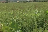 Ezen a Sé környéki mezőgazdasági területen tököt termesztenek. A takarmánynövény azonban alig látszik ki a parlagfű-tengerből. Stábunk figyelmét Molnár Sándor hívta fel a tarthatatlan állapotra.