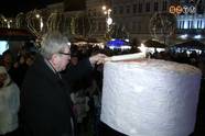 A Fő téren kapott helyet idén is a Hermann-iskolások által készített nagy koszorú, rajta az Ávár Tibor műhelyében öntött óriásgyertyákkal, amelyek közül az elsőt - hagyományosan - a polgármester gyújtotta meg az ünneplők gyűrűjében.