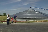 Már messziről látszanak az ezüstszínű kúpok a Vép határában található mezőgazdasági szövetkezet udvarán. A ponyvák alatt idén learatott búzát tárolnak. A tulajdonosok Kanadában bukkantak rá erre az itthon még sehol nem használt mobil gabonatárolóra, amelyből kettőt már vásároltak is. A szövetkezet vezetője azt mondja, ugyanakkora mennyiséget tizedannyi költséggel lehet itt raktározni, mint az épített tárolóban.