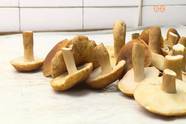 Ezen a napon leginkább ezzel, a sárguló csiperkével telt meg a gombavizsgáló kukája. De számos más fajtát is hoznak a gyűjtők. (12.06) Ez a változékony tinorú nyomásra vagy vágásra azonnal színt vált, emiatt nem kerül a tányérba, (13.01) ez a begöngyölt szélű cölöpgomba nem annyira csúnya, mégis sokkal mérgezőbb.