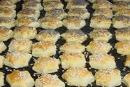 Pihentetés nélkül 1,5 cm vastagságúra nyújtjuk, kiszaggatjuk, tetejét lekenjük a maradék fél tojás és egy pici tej keverékével, majd tetszés szerint díszítjük, és előmelegített 210 fokos sütőben 15-20 perc alatt megsütjük.Megjegyzés: