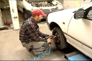Gumicserére érkezik ez az autó az egyik szombathelyi gumiszervízbe. A jó idő beköszöntével egyre több az ügyfél is. Cserére csak előzetes előjegyzés alapján lehet jönni.