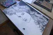 Páczelt Andrea tűnemez technikával készíti a képet az októberi Hommage Európa kiállításra. A Hatok művészeti csoport tagjaként nem először jár Szombathelyen, ösztönzőleg hat rá az alkotótársakkal töltött idő.