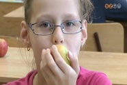 Almát és körtét kapnak a gyerekek, valamint gyümölcslevet az iskolagyümölcs program keretében idén. Itt, a Gothard iskolában 525 gyereknek jut a gyümölcsből, idén már nem csak az alsósok, de az ötödikesek és a hatodikosok is kapnak.