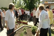 A nappali szolgálat ellátottjainak műsora kíséretében, a Szociális Hét keretében adták át a kiskertet. A fogyatékkal élő fiatalok nagy lelkesedéssel fogadták az újítást, segédkeztek a magasított zöldség- és eperágyások kialakításában, lapátolták a földet, magokat vetettek.