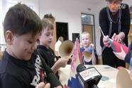 A farsangi papírtrombita éles hangja a tél elűzésében segít, ezt készítették el a Bercsényi-iskola elsősei a csütörtöki foglalkozáson. Színes papírral, rojtokkal, kartonnal, csillag- és virágformákkal dolgoztak, a sípot a végén ragasztották a helyére.