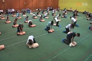 A siker érdekében a résztvevőknek öt percen keresztül egyszerre, folyamatosan kellett az újraélesztést gyakorolniuk. A rekorderek emléklapot vettek át, majd baleseti szimulációt nézhettek meg.