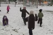 A kicsik nagyon örültek annak, hogy végre igazi tél lett: több tucatnyi kisgyermek használta ki a friss hó adta játéklehetőségeket.