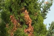 A fertőzés leginkább a meggyengült tujákat fenyegeti.