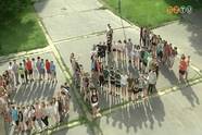“Főként gyorsaságra és egyensúlyra van szükség, meg talán egy kis csapatmunkára. Mindenkinek végig kell mennie egy oszlopon, azután pedig a tömlőket kell végighúzni, meg kirakni egy puzzle-t, ennyi végülis, és egy csapatként működik háromszor nyolc csapat.”