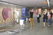 Csaknem 1300 m2 falfelületről távolítják el a graffitiket. Az ún. finomszemcsés technológiával a vakolt és a mozaikos felszínt is letisztítják.