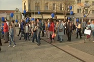 Az ünnepség végén a résztvevők kék lufikat engedtek a magasba.