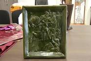 "Ez a kályhacsempe egy romkerti ásatáskor keürlt elő, Szentléleky Tihamér ásató régész idejében a 70-es évekből ... készítette el, amiből szépen összeállt egy egész kályhacsempe."