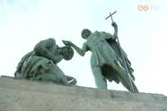 A pályázatot komoly sajtóérdeklődés kísérte. A tíztagú bizottság végül Rumi Rajki tervét támogatta. A háromszög alakú kompozíció bronzból készült, azt a pillanatot ábrázolja, amikor Márton szenteltvízzel hinti meg édesanyját, aki térdre borul előtte. 1938 júniusában kezdték az alapozást, október 2-án avatták fel a szobrot óriási tömeg jelenlétében. A kezdeti kritikák ellenére a szombathelyiek hamar megszerették az alkotást, amely a város egyik legszebb köztéri szobra. 1996-ban a Rumi Rajki kör kezdeményezésére restaurálták.