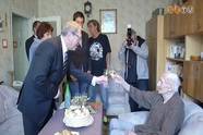 90. születésnapja alkalmából Puskás Tivadar polgármester is felköszöntötte otthonában Mesterházy Lajost. Lajos bácsi Nagygeresden töltötte a gyermekkorát, szülei az ottani uradalomban szolgáltak. A nyolc elemi elvégzése után Sárvárra került, népművelőként dolgozott, majd Sopronban élt, ahol hentesként, majd egy öntödében vállalt munkát. Fiatalon több neves színész mellett szerepelt A mi földünk című filmben. 1962-ben megnősült, ezután került Szombathelyre, a cipőgyárban dolgozott hegesztő munkakörben. Egy lánya és két unokája van.