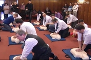 Egyszerre végeztek újraélesztési gyakorlatot a szombathelyi önkormányzati képviselők. Az oktatást a mai közgyűlés szünetében tartották.